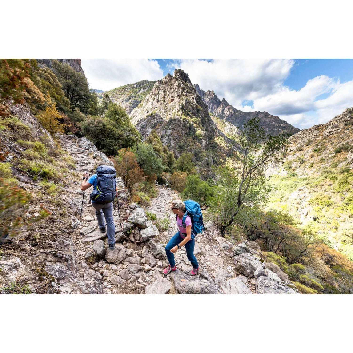 The Atmos AG 50 is equipped with the unique, tensioned . Equipped with the ExoForm™ Biostretch™ shoulder straps, load control straps and Fit-on-the-Fly™ hip belt, the pack feels almost weightless on your back even when fully loaded. The Inside Out™ compression strap system keeps the pack’s contents in place as you walk, providing support as you carry it. The convenient Stow-on-the-Go™ system lets you easily attach your trekking poles to the pack without having to remove it. The sleeping bag compartment with internal divider offers the possibility to store more equipment separately. The integrated and removable rain cover is stowed in the lid. If you want to save weight, thanks to the FlapJacket™ you can remove the lid and the backpack contents will still be protected from the weather.