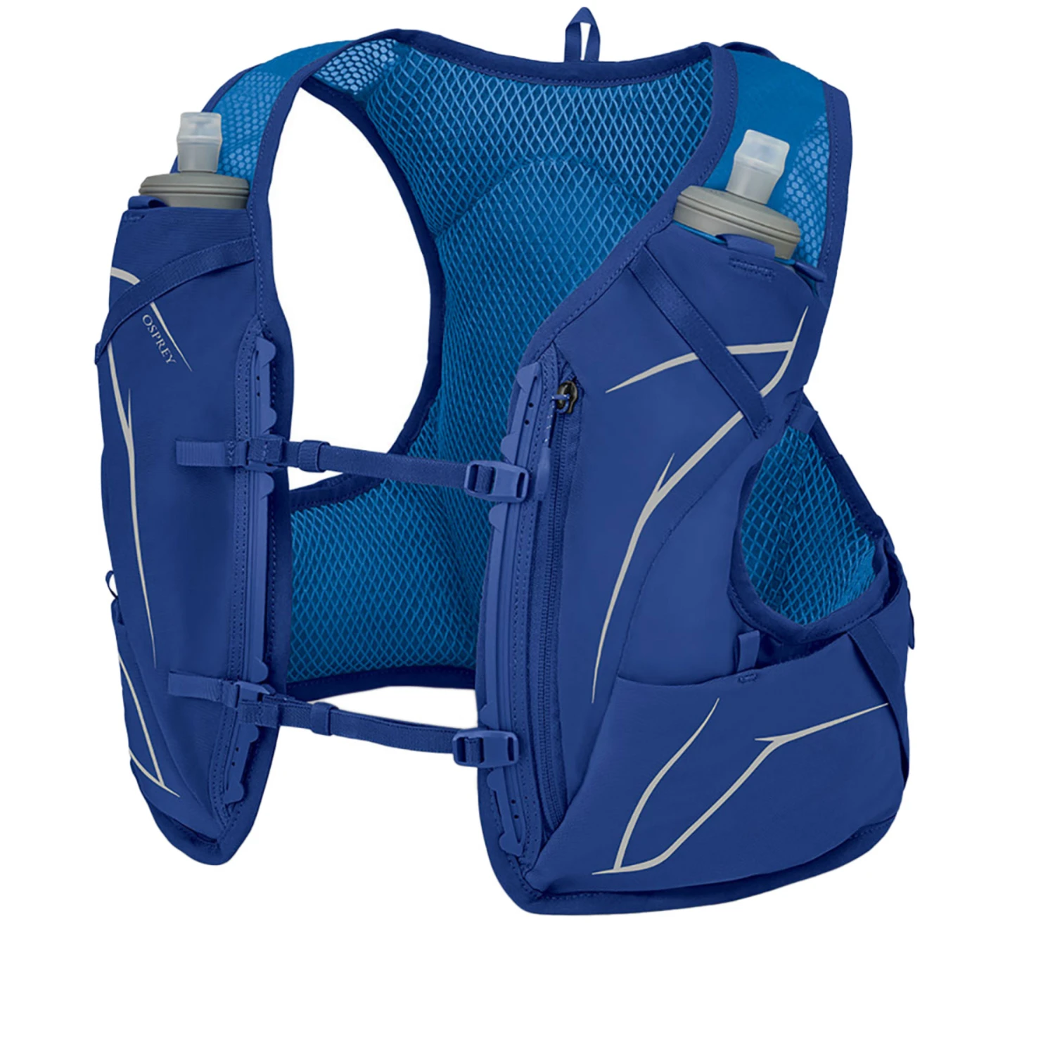 <p>The Duro 1.5 Trail Running Vest from Osprey is a minimalist companion on fast running laps on the trail. It is equipped with two Softflaskst with a quarter liter volume each and can be equipped with a separately available Hydraulics reservoir to carry even more water. For the transport of energy bars, gels and the smartphone, the vest is equipped with small pockets on the shoulder strap. So nothing can go wrong on the next longer tour.<br></p>